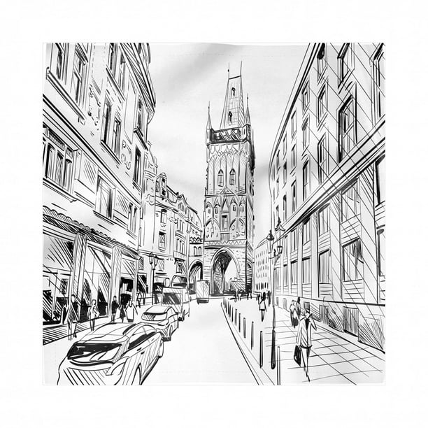 City Old Houses Decorative Napkins Set Of 4 Prague City Sketch European Cityscape Pencil Drawing Style Illustration Silky Satin Fabric For Brunch Dinner Party 12 Black White By Ambesonne Walmart Com